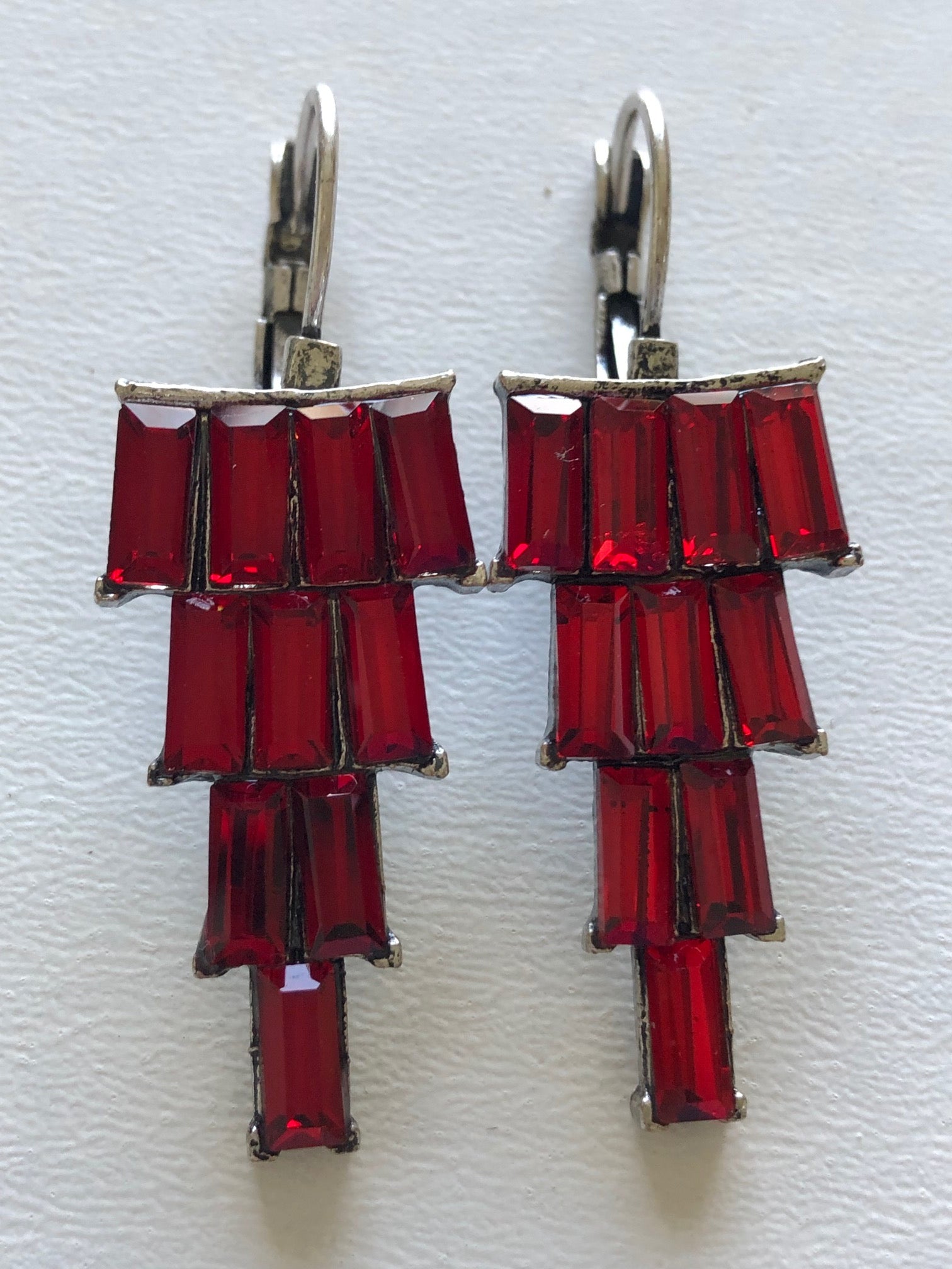 There are 3 beautiful options for this pair!!! Vibrant red & gold, vibrant red & silver or moody copper & silver. All of our earrings are nickel-free and manufactured from high-quality materials. Size - the widest part of earring 15 mm, height top to bottom of triangle 43 mm.