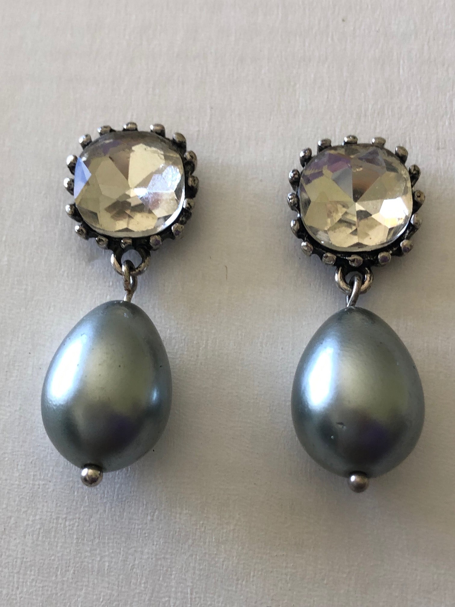 All class! These pearl drop earrings are just stunning!! We offer the option of a grey pearl with silver stud or white pearl with gold stud. All of our earrings are nickel-free and manufactured from high-quality materials. Size - the width of crystal 9 mm, height top to bottom of pearl 40 mm.